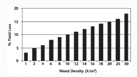 Weed management is essential for profitable canola production 1. Of the important requirements for high yield potential, weed management is more important than fertilizer, more important than genetics 2. A meta-analysis of 89 studies from 2003 to 2020 estimated an average of 30 per cent canola yield loss due to weed interference in Canada, with average canola yield losses (weighted by canola harvested area) of 35%, 30%, 18% in Alberta, Saskatchewan and Manitoba, respectively 3.